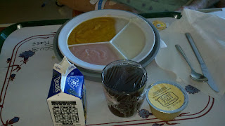 Dinner consisted of pasta and spaghetti sauce - pureed. John looked at me and said "this isn't like what we make." I had to giggle. He also had pureed mixed veggys. He did not want to eat them, but almost finished his Italian dinner while we gave thanks that he was able to have food.